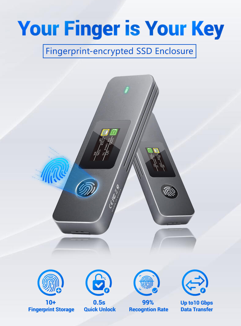 Fingerprint SSD Enclosure for NVMe & SATA 10Gbps