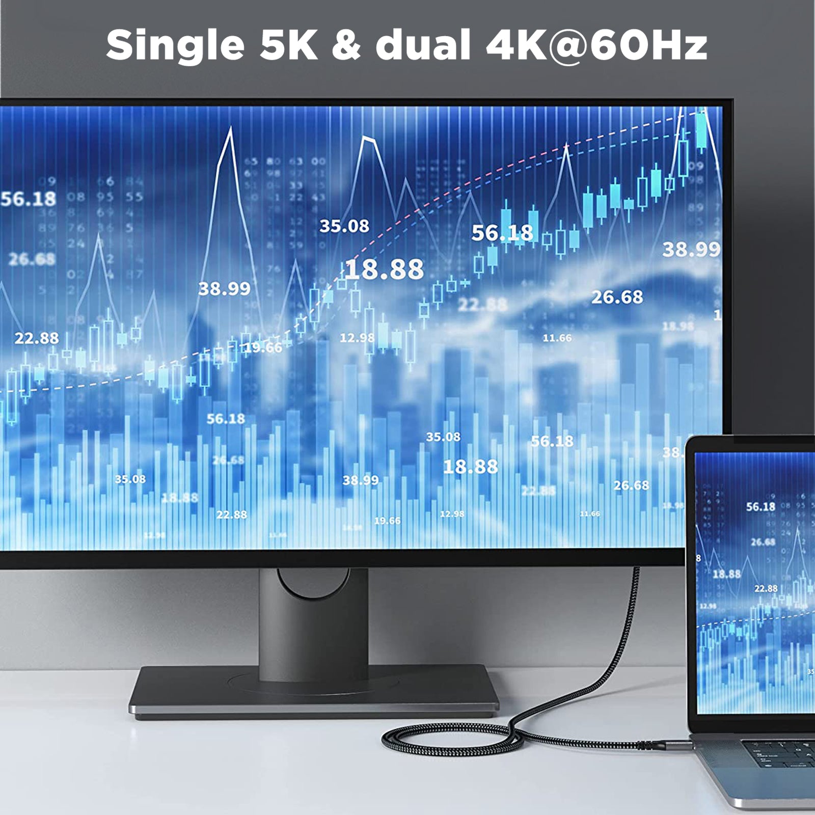 Experience single 5K@60Hz and dual 4K@60Hz resolutions, providing sharp visuals for editing, gaming, and presentations with vibrant clarity.
